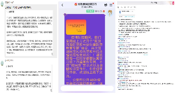 疫情防控期间,专题班会采用线上方式开展,公司辅导员们通过QQ班级群、QQ视频会议、腾讯会议等多种新媒体方式将常见电信诈骗案件、不良“校园贷”警示等学习材料传达给每个班级的每一位员工,并结合日常工作案例和线上交流等方式提升班会效果,共有36个班级,1734名员工参与。