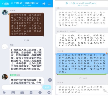 本次主题团课学习,同学们除了通过在线观看直播,还在QQ群、微信群等平台展开热烈讨论。大家纷纷表示,面对当今这种世界格局的变化,我们要把青春播种在学习的土壤里,练就过硬本领奉献祖国,为祖国的飞速发展与中华民族的伟大复兴贡献自己的力量,让青春在党和人民最需要的地方绽放绚丽之花。