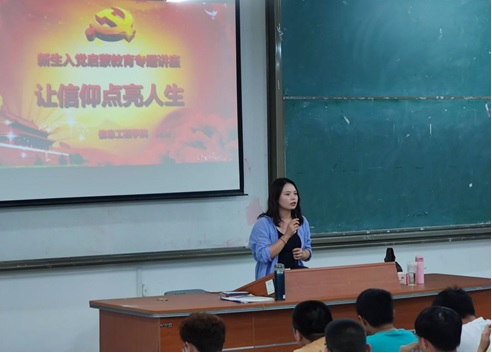 最后,吴洁老师勉励2021级新生要紧跟党的步伐,认真学习党的理论知识,积极进取,争取早日加入党组织。同时,激励同学们坚定理想信念,成为合格的社会主义建设者和接班人。