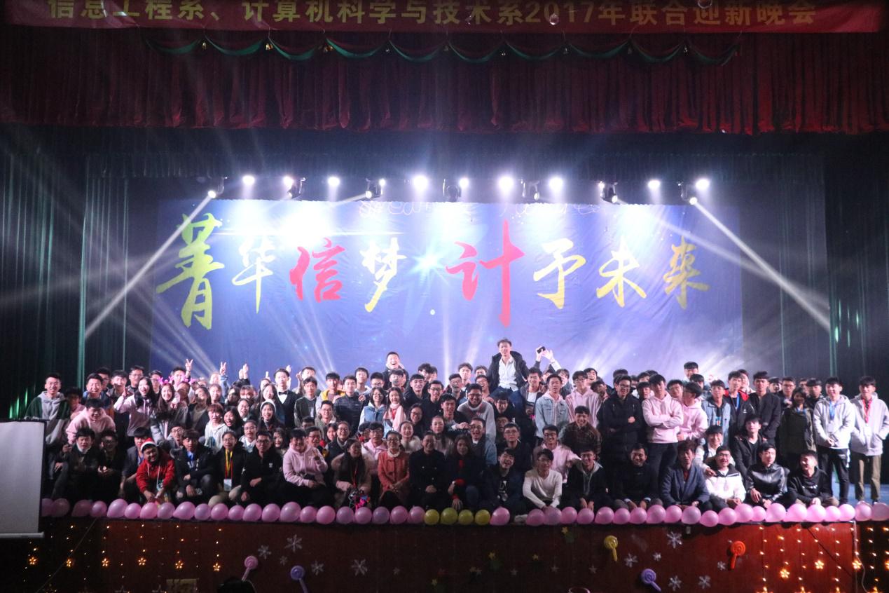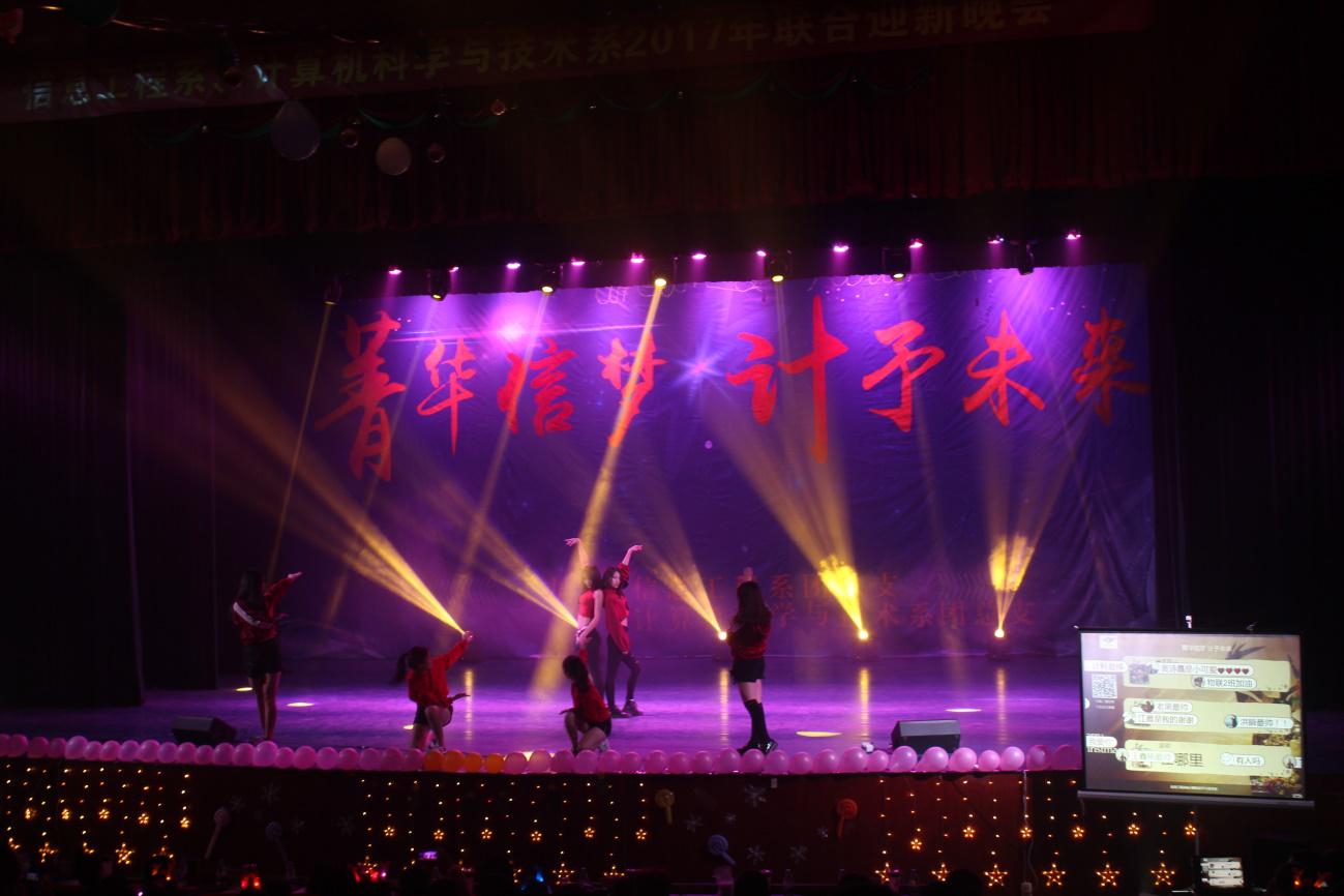 为迎接2017级新生的到来,展现我系学子风采,2017年12月25日,由信息工程系以及计算机科学与技术系联合举办的“菁华信梦,计予未来”迎新晚会在bw必威西汉姆联官方网站活动中心举行。出席本次活动的嘉宾有信息工程系党总支书记王志刚、团总支书记林志杰、系主任林勇,计算机科学与技术系党总支书记林强、团总支书记苏姜燕、系主任田玉山。