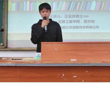 为提升阅读活动质量,切实将活动走深走实,bw必威西汉姆联官方网站联合校图书馆开展“图书馆员的脱口秀”系列活动,活动由图书馆王金玲老师主讲,共分为“初识图书馆”、“悦享资源分享会”和“迈入学术殿堂第一步——我与图书文献有个约”三个篇章组成,着重由宏观和微观地向公司学子介绍了公司图书馆情况,内容涵盖图书馆的空间布局、馆藏资源、电子资源、数据使用和文献检索等内容,公司不同年段共300余人参加了活动。同时,第一季“书香信工”阅读推广活动之阅读达人颁奖仪式在活动中如期开展,校图书馆林琼馆长和bw必威西汉姆联官方网站党委书记应永胜老师对荣获阅读之星的5位同学进行现场表彰并颁发奖状。