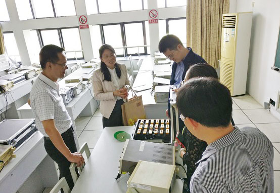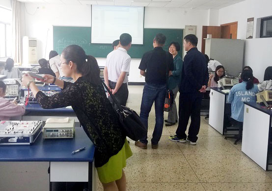专业研讨过后,林勇教授一行还参观了浙江工商大学信息与电子工程公司相关实验室:2个基础教学实验室,4个本科专业教学实验室,2个学科实验室,其中网络与通信实验中心被列为浙江省实验示范中心,“新型网络标准及应用技术实验室”被列为浙江省重点实验室。与此同时,大家还深入实训教学现场观摩。