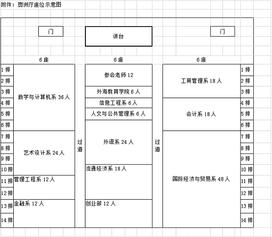 1.请各系组织好员工按指定位置(附件图)提前15分钟入场
